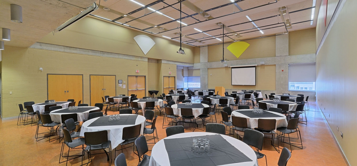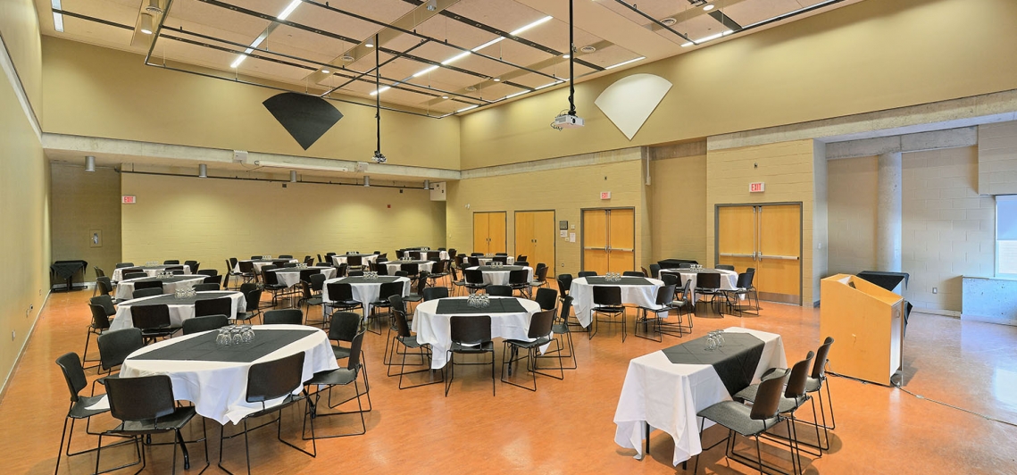 Tecumseh Auditorium is our largest room which can seat up to 170 guests. This room offers high ceilings, a fully equipped audio visual system, a Christie 3LCD projector and a massivley large screen and has lots of versatility. The Tecumseh Auditorium is an exciting space to celebrate all sorts of occasions including, but not limited to, meetings, presentations, lectures, career fairs, buffet dinners, plated dinners, cocktail receptions, trade shows, as well as powerful training sessions with colleagues.