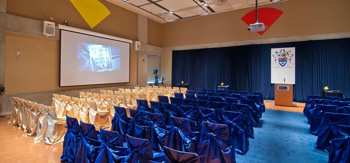 Tecumseh Auditorium has undergone a complete Audio Visual upgrade to enhance the experience of hosting an event at the Ryerson Student Centre. All features have been upgraded in the room. The room’s upgrades are listed below:
